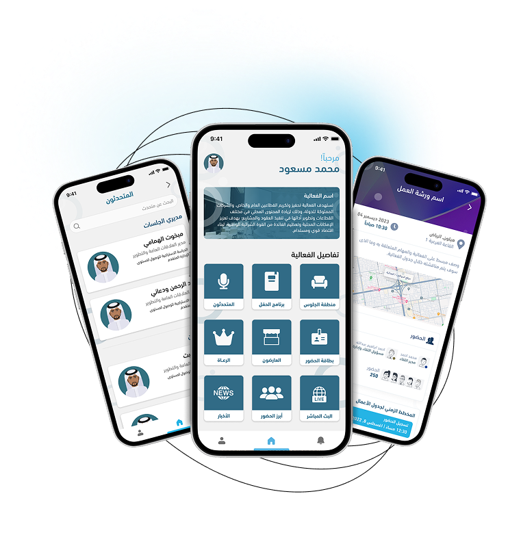 التطبيق المثالي لجعلك على علم بكافة تفاصيل (اسم الفعالية): الجدول الزمني, موقع الفعالية, جدول الأنشطة, المتحدثين وبطاقة الحضور..